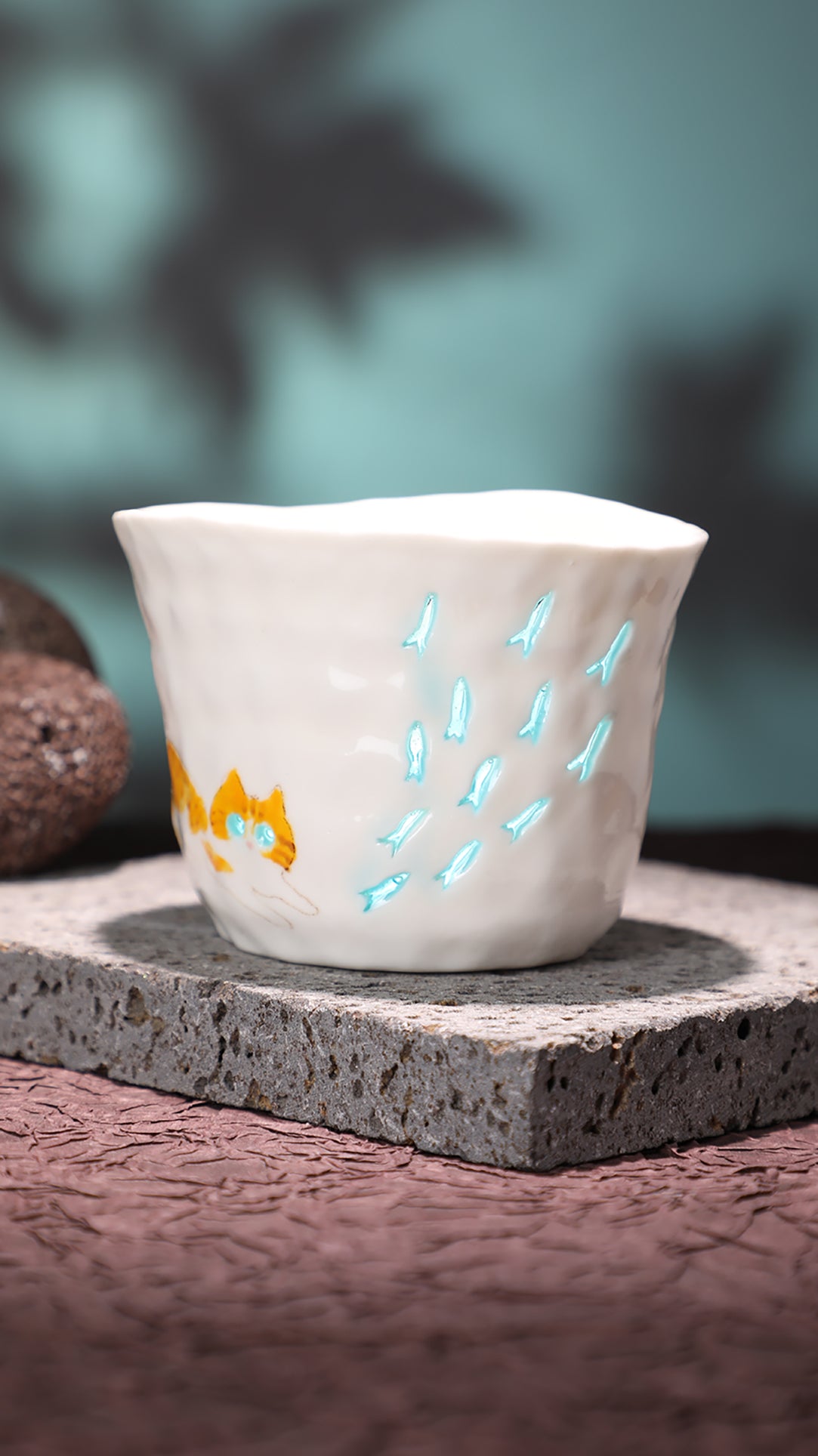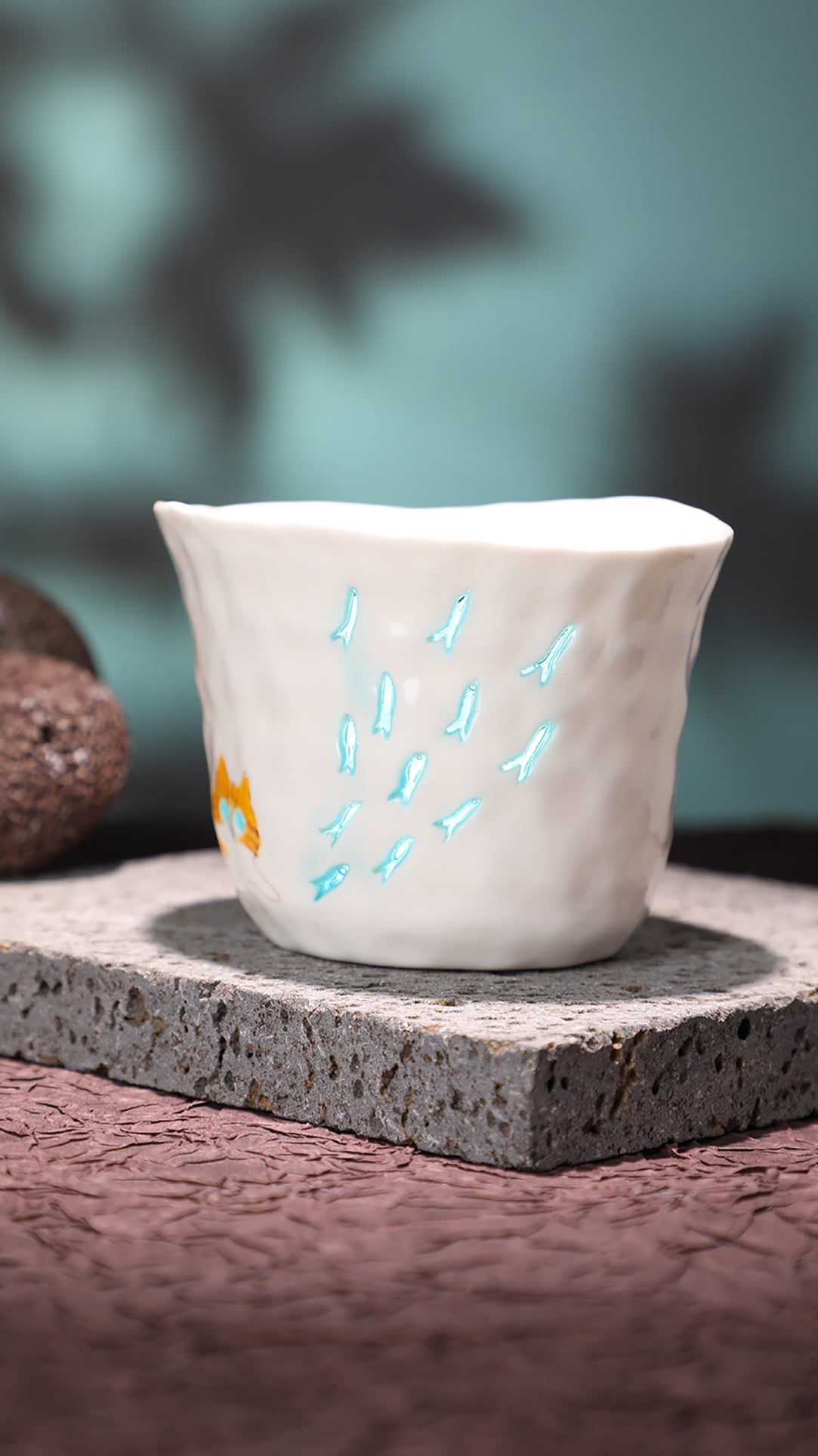 Hand-pinched and hollow-carved ceramic cup, finished with a translucent “linglong”“玲珑” glaze that softly glows when held against the light.