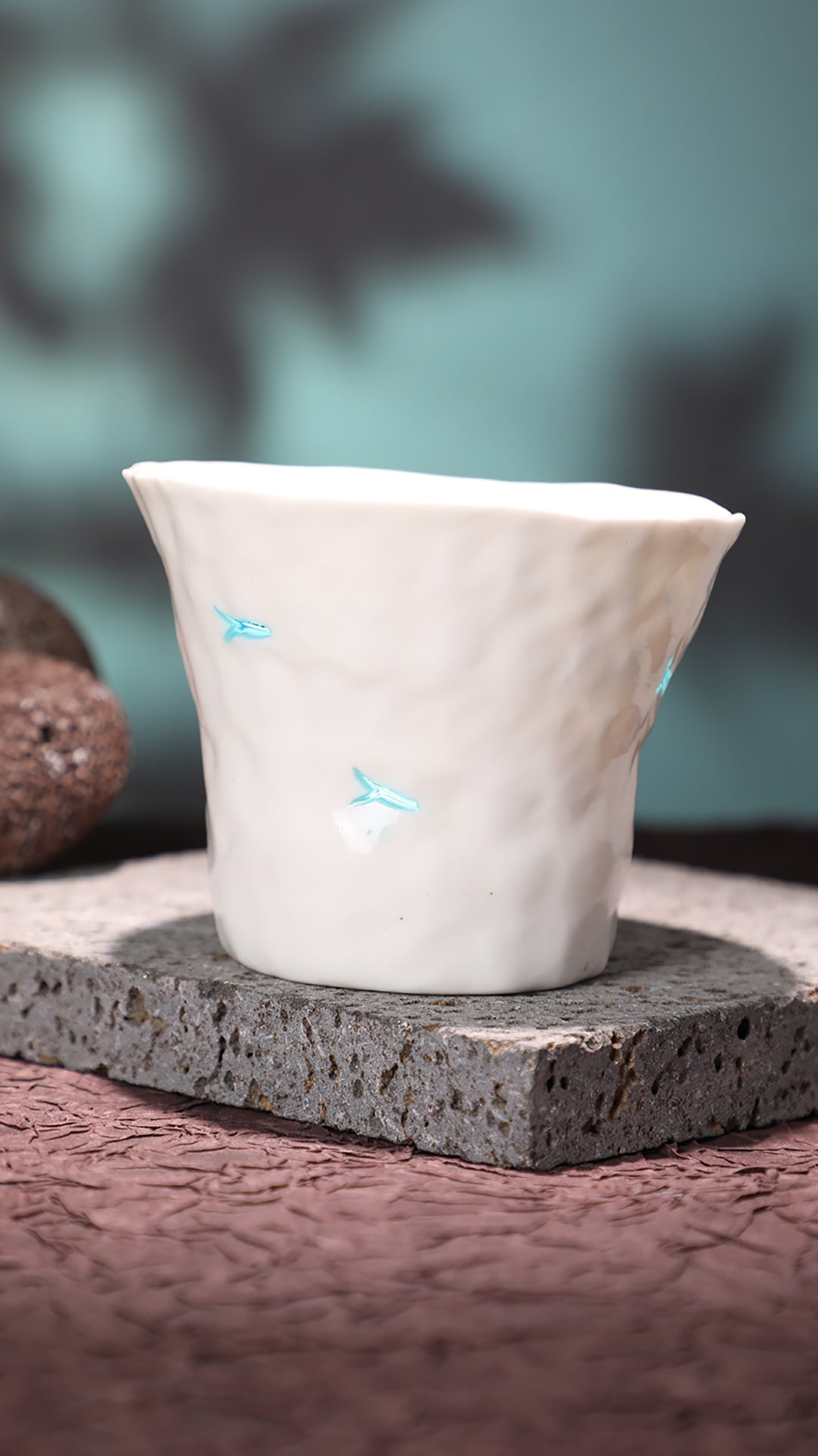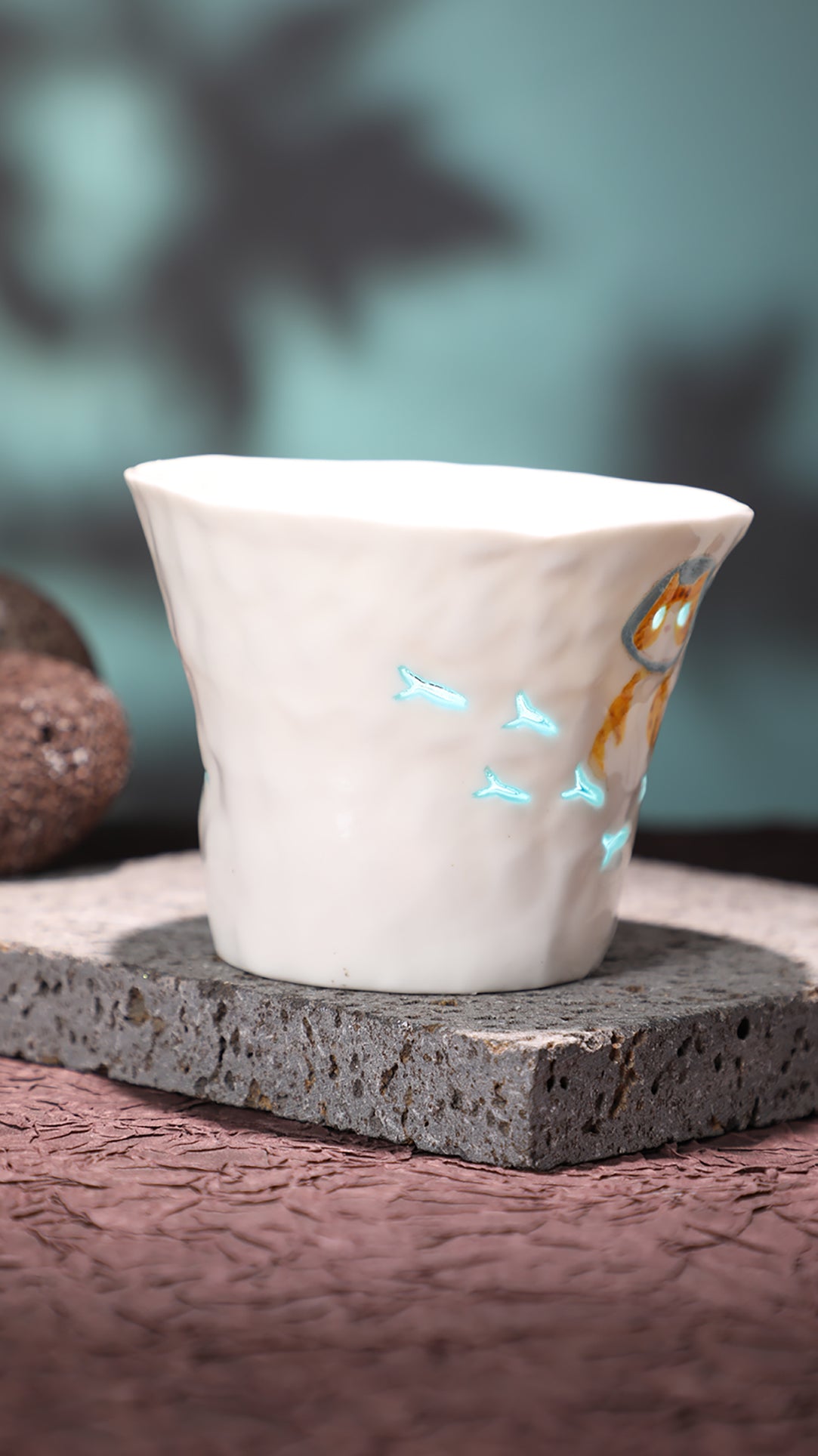 Hand-pinched and hollow-carved ceramic cup, finished with a translucent “linglong”“玲珑” glaze that softly glows when held against the light.