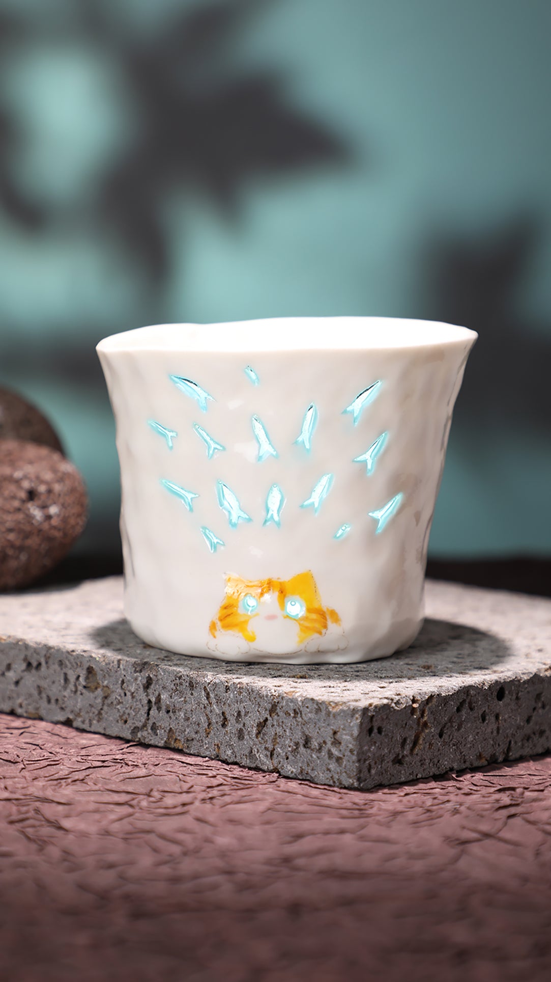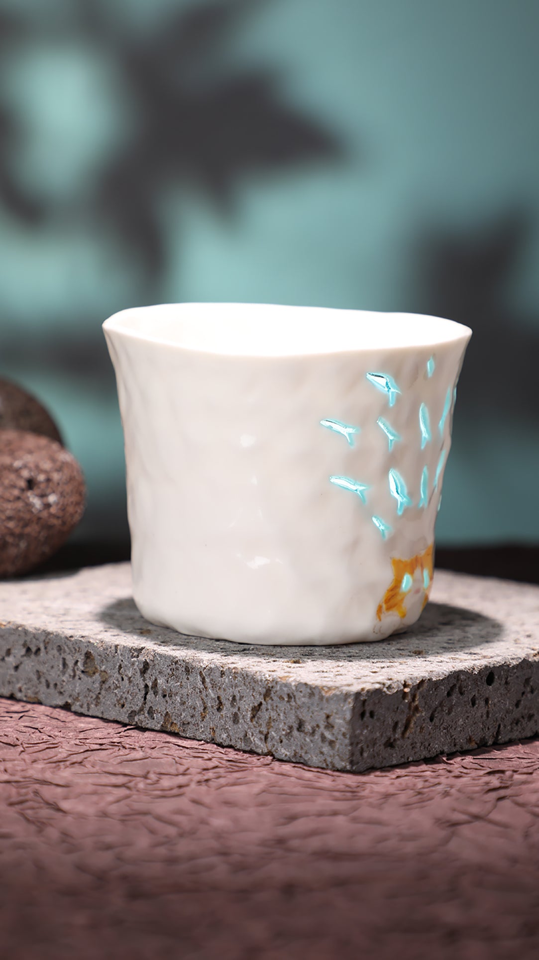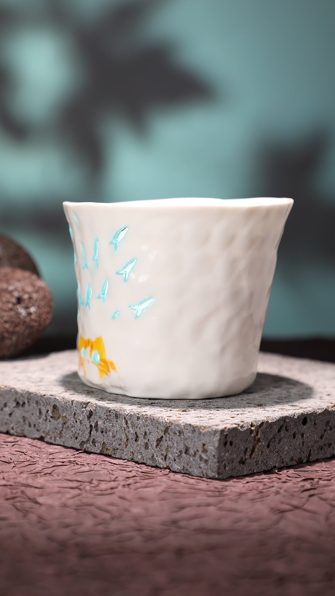 Hand-pinched and hollow-carved ceramic cup, finished with a translucent “linglong”“玲珑” glaze that softly glows when held against the light.